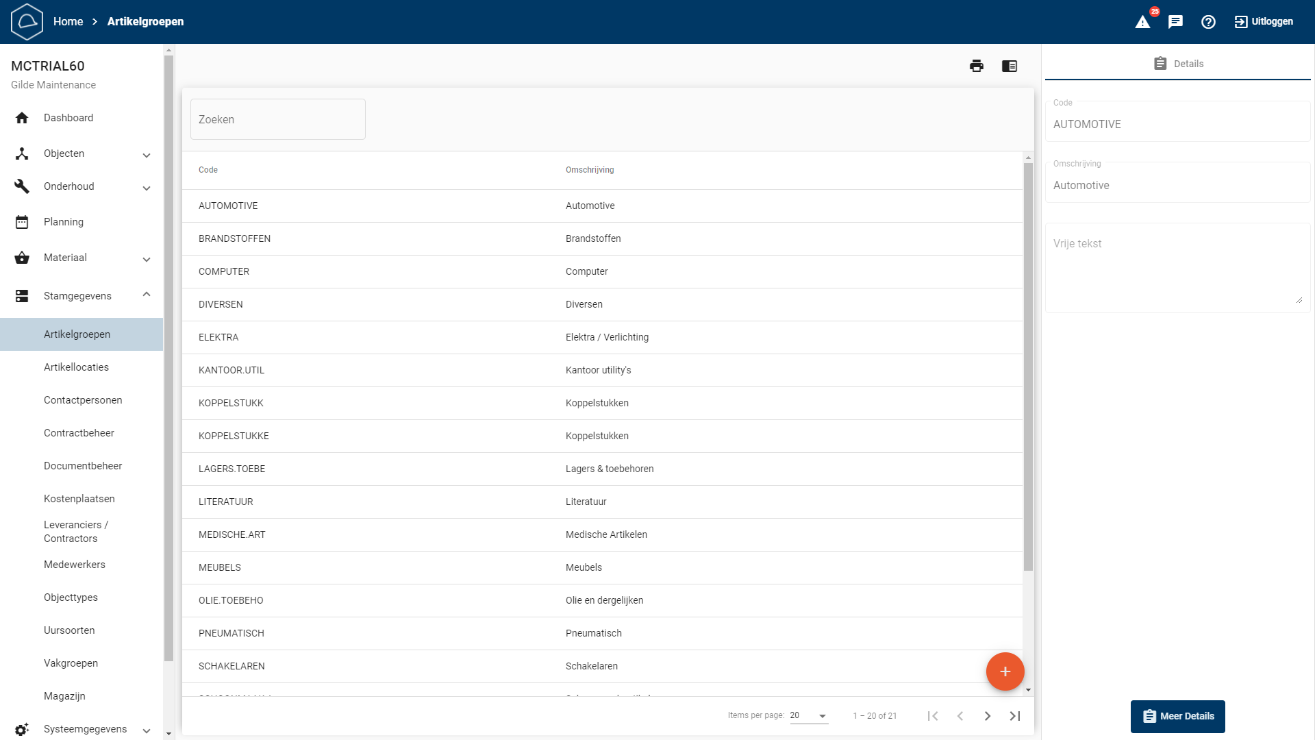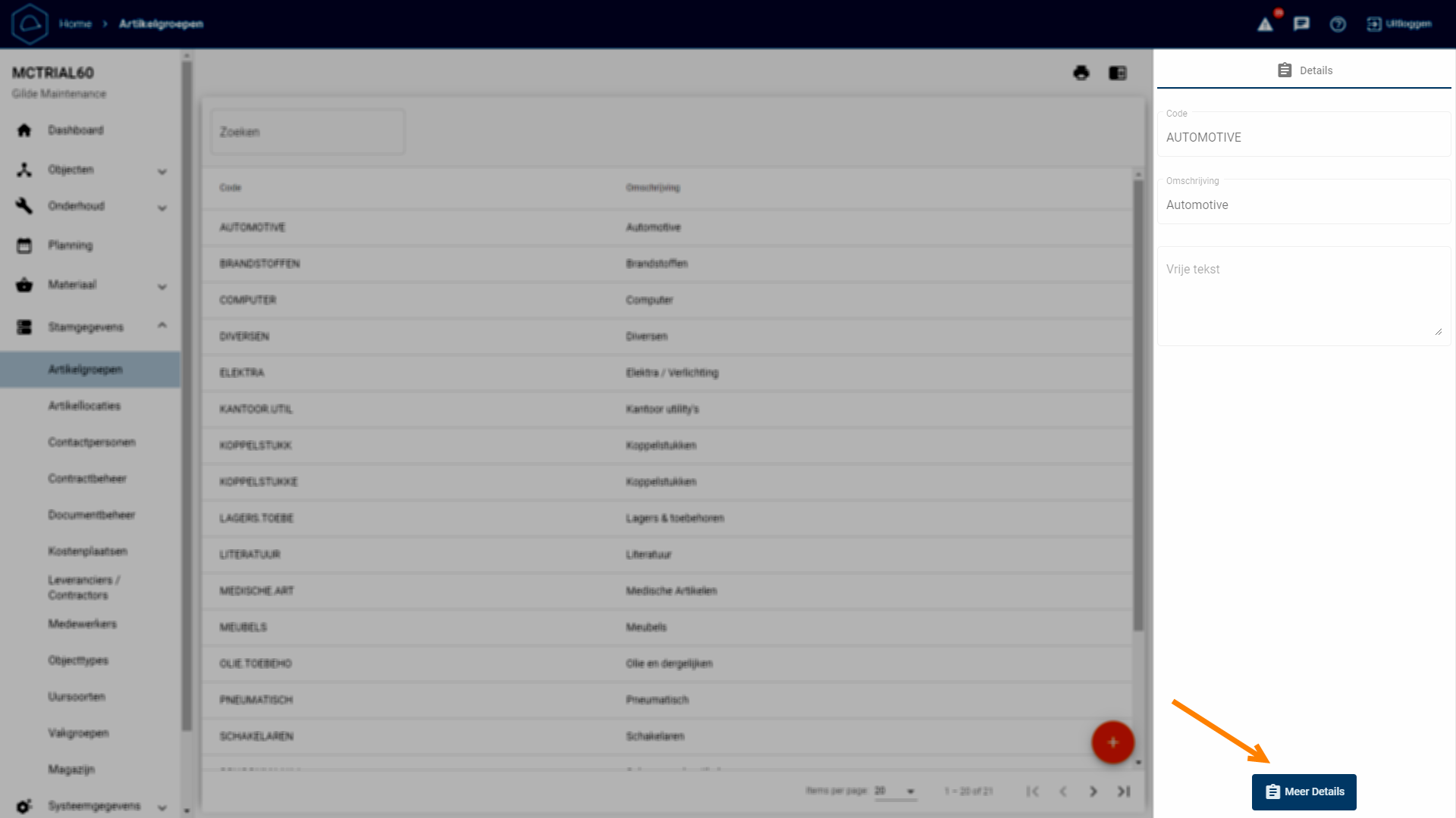 Dubbelklik op een artikelgroep of klik op de "Meer Details"-knop om het detailscherm van die artikelgroep te openen.