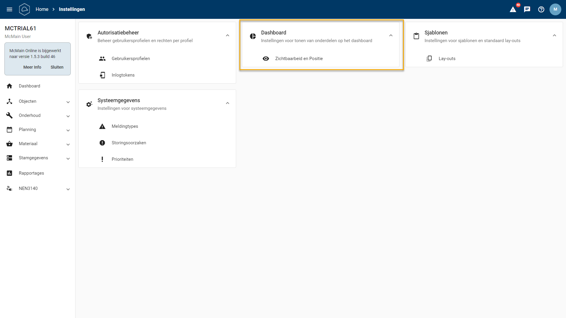 Om de weergave van de dashboardkaarten aan te passen, volg deze stappen (mits je daartoe de rechten hebt):