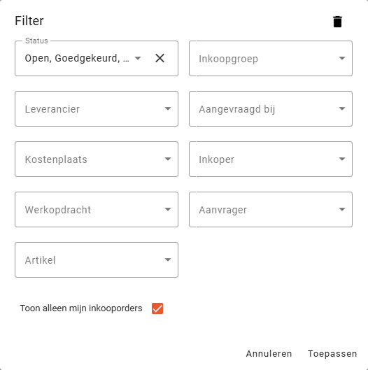 Filter inkooporders