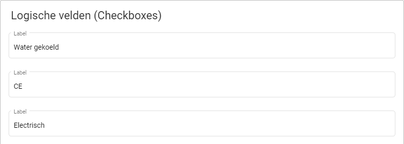 Logische velden zijn bedoelt om specificaties op te noemen waarbij een vinkje aan- of uitgezet kan worden. Deze onderdelen zijn bij een object wel of niet aanwezig. Denk hierbij aan een CE (of andere) keuring.