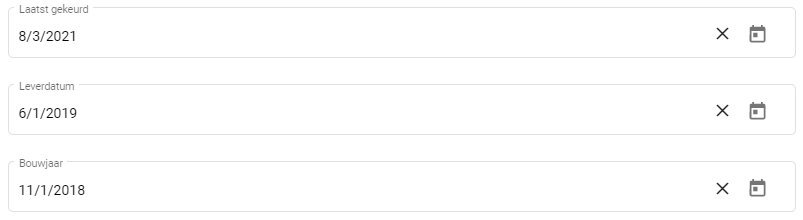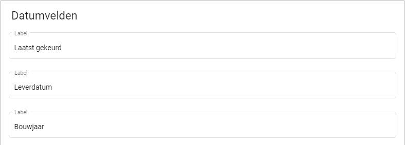 Datumvelden zijn bedoelt om specificaties op te noemen waar een datum aan te pas komt. Denk hierbij aan het bouwjaar of garantie datum.