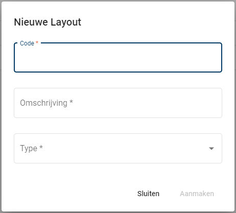 Een nieuwe lay-out toevoegen: Klik op de oranje knop rechtsonder om een nieuwe lay-out toe te voegen. Hierdoor wordt een pop-upvenster 'Nieuwe Lay-out' weergegeven.