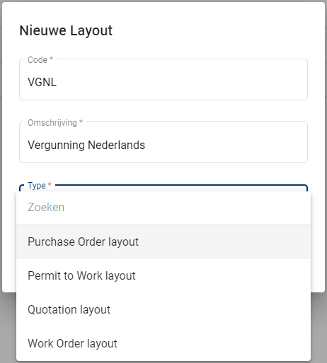 Kies het Type: Bij het maken van een nieuwe lay-out kunt u kiezen uit 4 types: