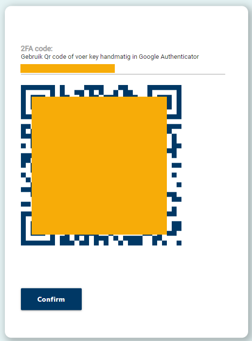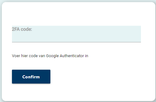 Stap 5: Klik op ‘Confirm’ en vul de code in die nu te lezen is op uw Authenticator App. Deze 6-cijferige code wordt om de zoveel seconden vernieuwd.