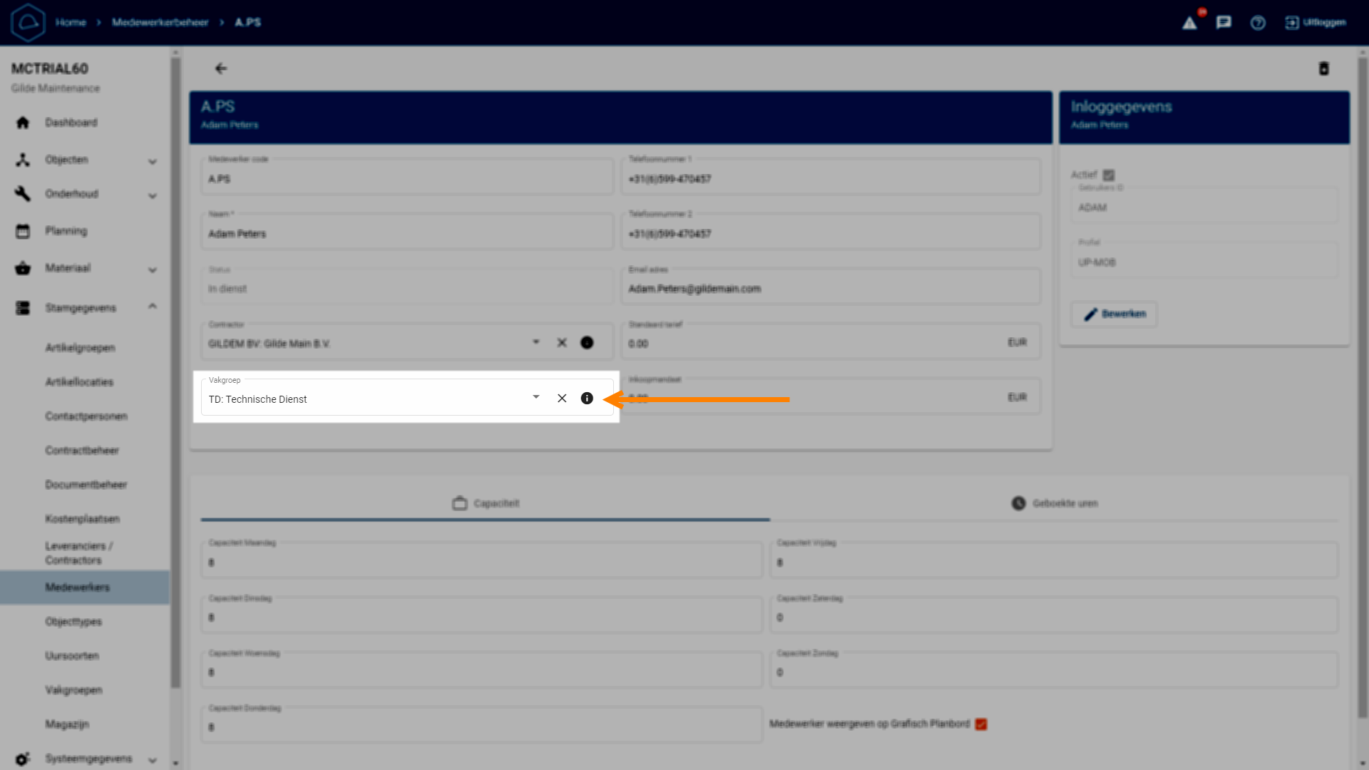 De vakgroep waar een medewerker onder valt kan op de informatie-pagina van de medewerker worden aangepast.
