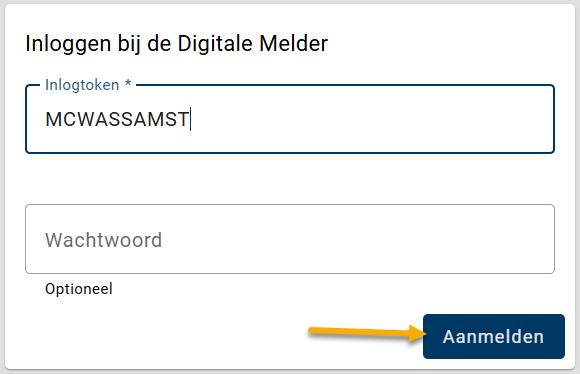 Log in op de Digitale Melder app ( Android / Apple / Browser ) met de omgevingscode (Staat in McMain Online, linksboven beginnend met MC........)