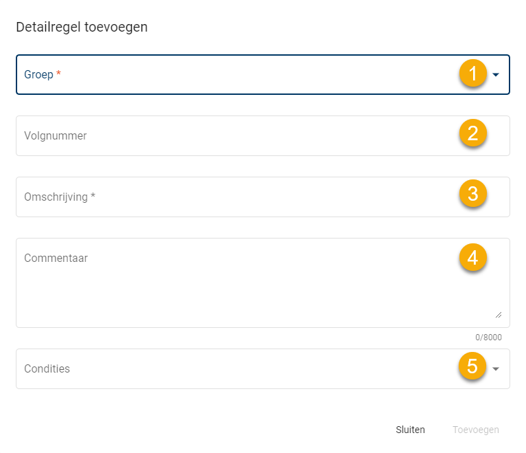 Hier kan een nieuwe detail regel worden toegevoegd.