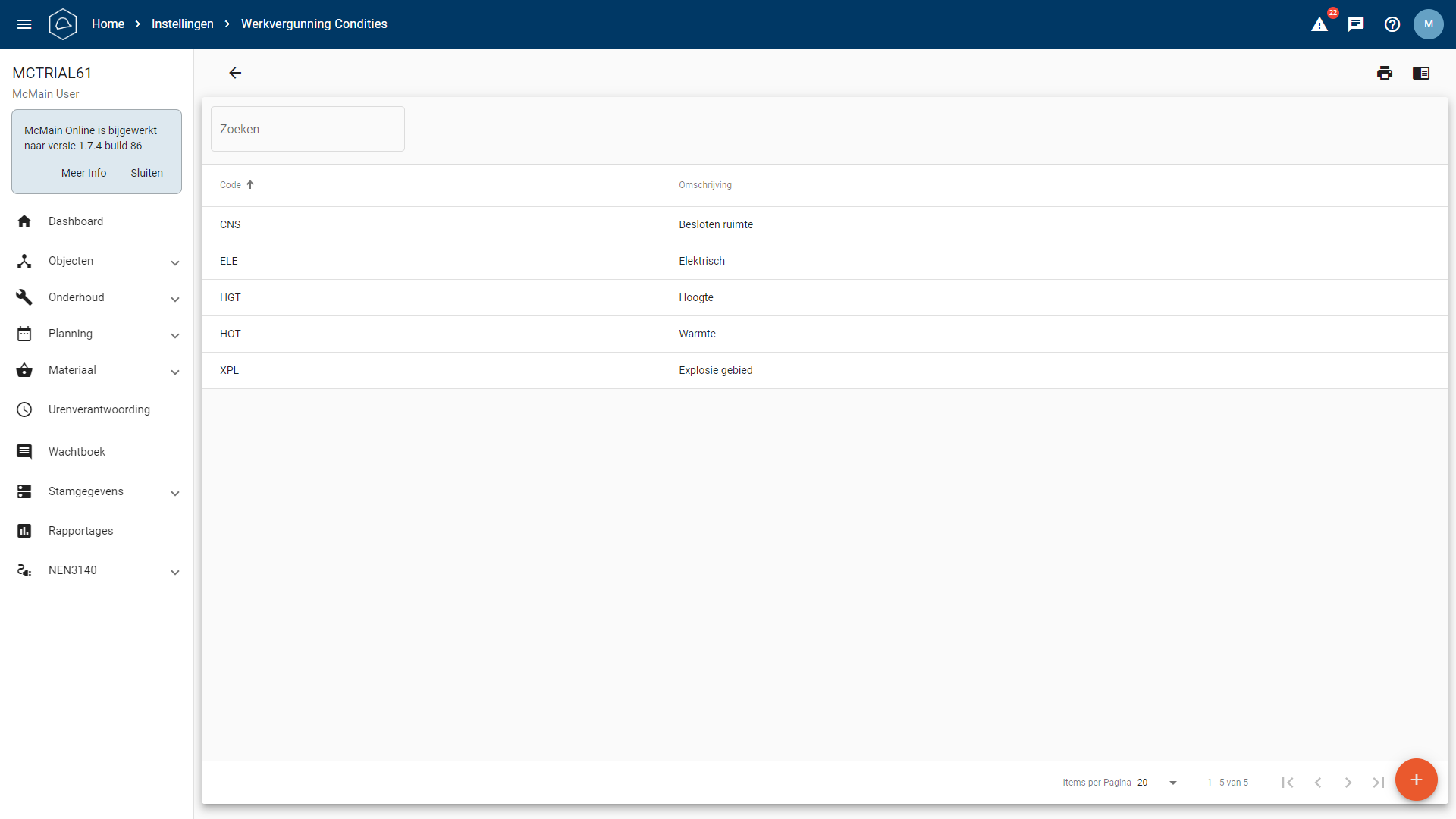 Een conditie toevoegen kan op de lijst pagina van condities door op de plus te klikken rechts onderin, het volgende scherm komt dan naar voren.